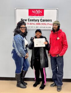 For Milan E., the road to a career in manufacturing started with a simple sign. After working as a Lyft driver for two years and as an asbestos removal specialist, she was looking for a stable and fulfilling career. One day, outside the Homewood YMCA, she noticed a sign advertising New Century Careers’ MANUFACTURING 2000 (M2K) program. Intrigued by the opportunity to develop hands-on skills in a high-demand industry, she decided to take the leap.