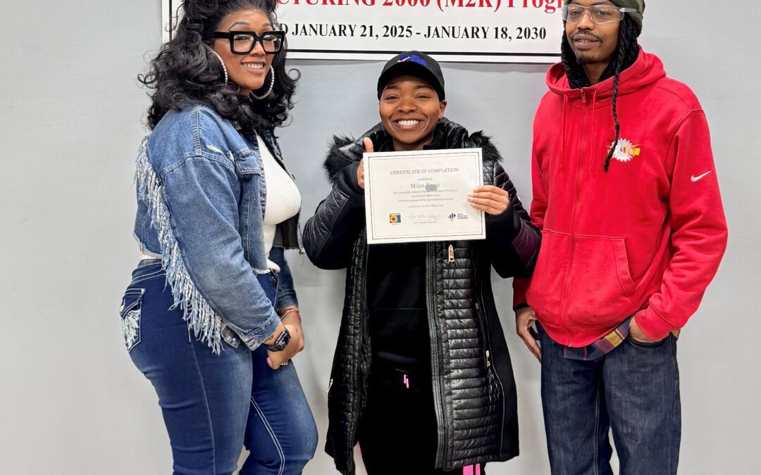 For Milan E., the road to a career in manufacturing started with a simple sign. After working as a Lyft driver for two years and as an asbestos removal specialist, she was looking for a stable and fulfilling career. One day, outside the Homewood YMCA, she noticed a sign advertising New Century Careers’ MANUFACTURING 2000 (M2K) program. Intrigued by the opportunity to develop hands-on skills in a high-demand industry, she decided to take the leap.